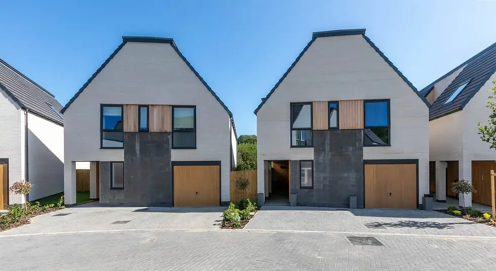 Installation of windows, doors, and small curtain wall screens across a ten-plot residential housing estate.